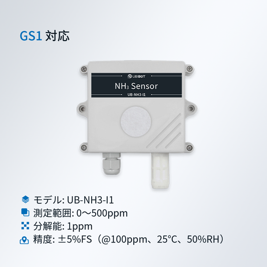 Ubibot NH₃センサー|0〜500ppm測定範囲・工場/化学/肥料/製薬向け・GS1対応